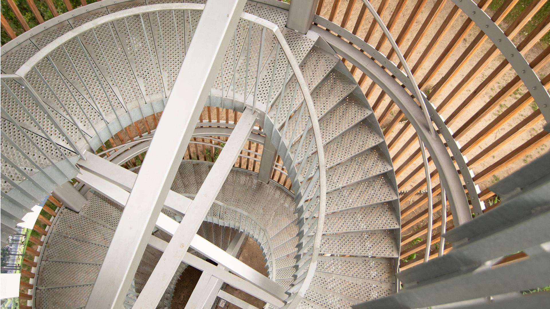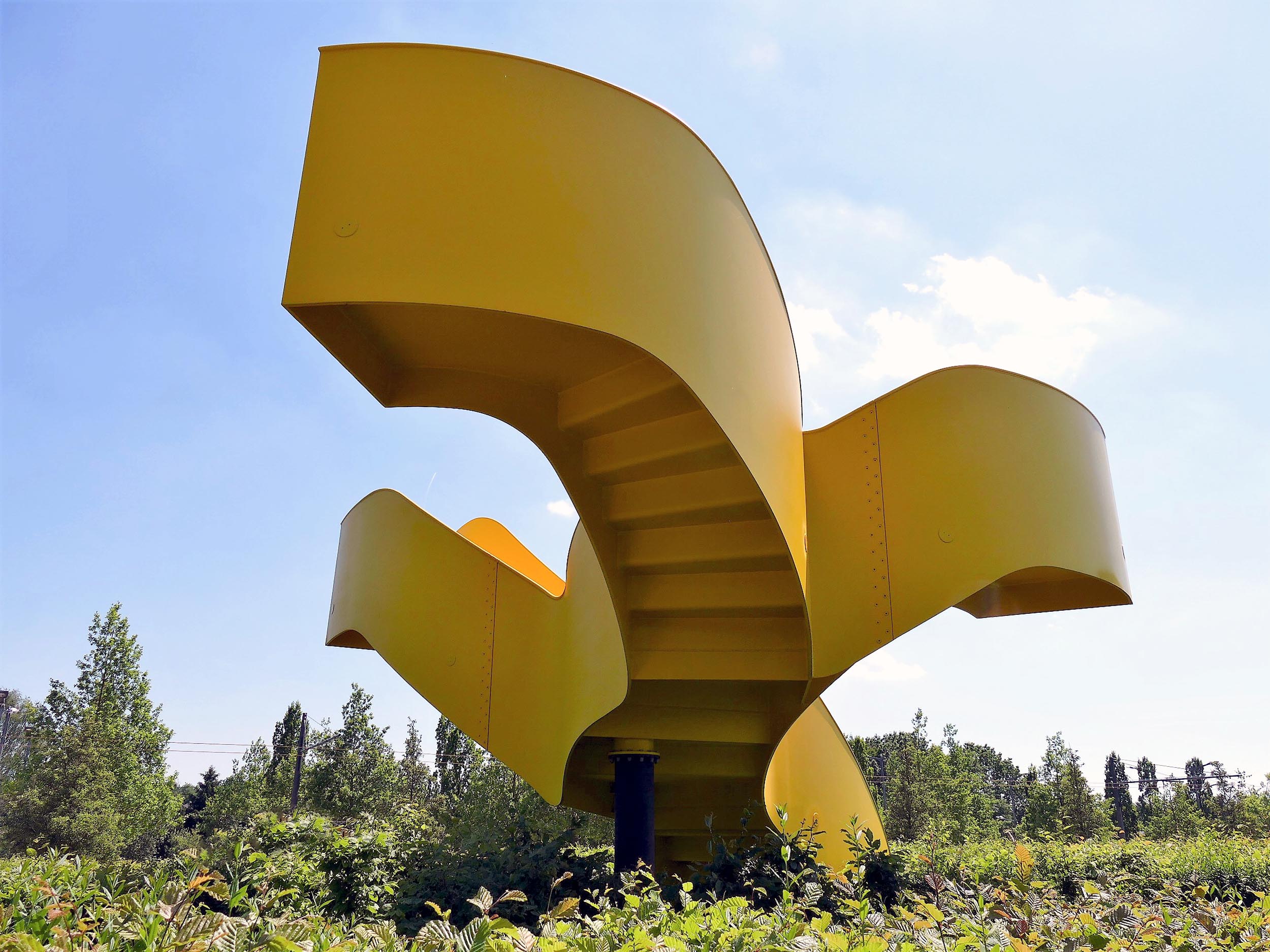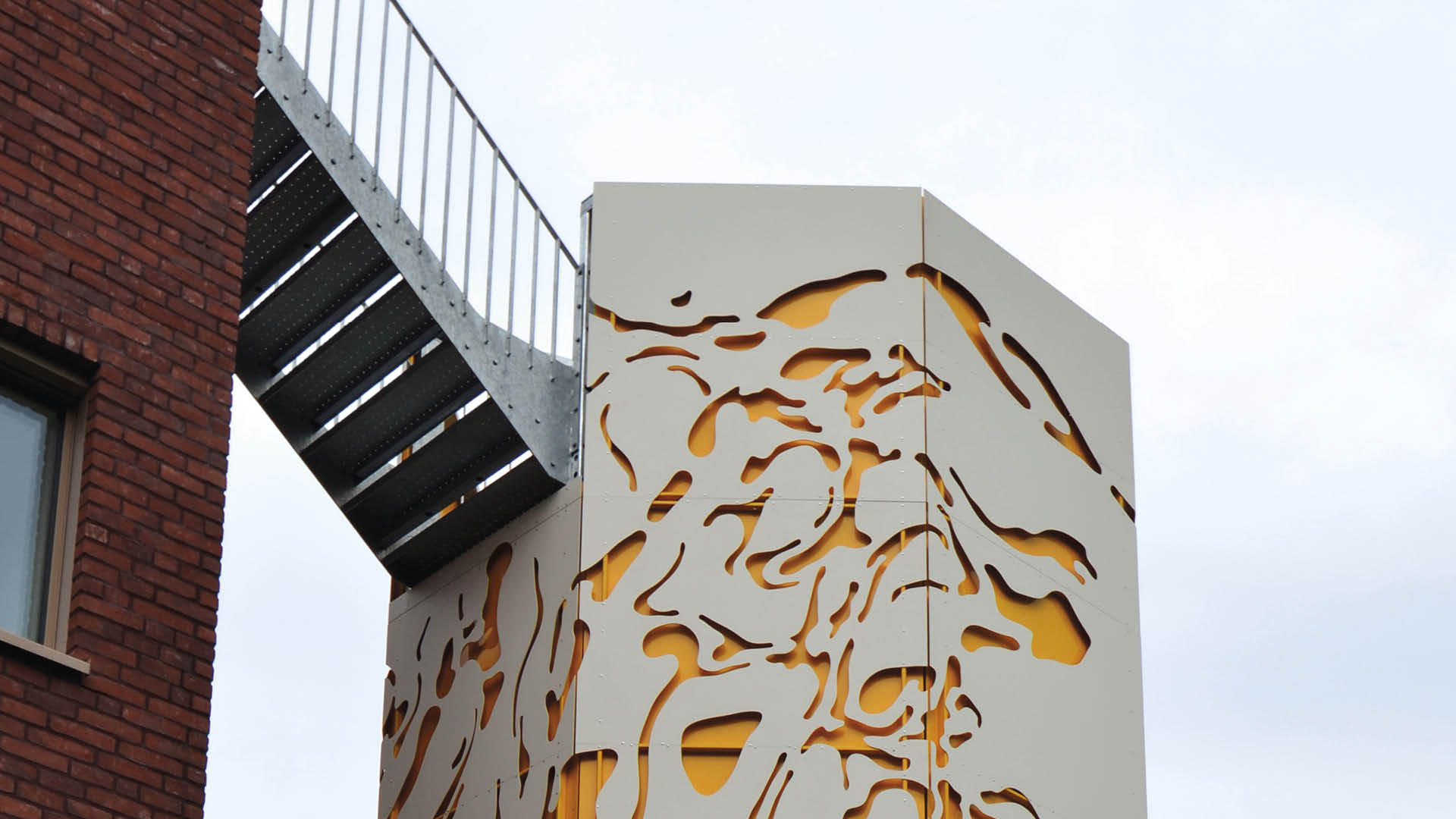 Wenteltrap in weervast staal bij bouwblok Madeleine