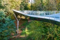 Spiegelend staal doet passerelle opgaan in groene omgeving