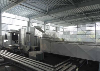 <p>Le bâtiment, d'une superficie de 70x126 m, est constitué d'une structure en acier, combinée à des panneaux sandwich en béton, à un bardage en acier isolé et à une toiture en acier isolée. Cette usine offre non seulement un espace pour la production des éléments, mais aussi des installations pour le stockage des matières premières pour le béton, une usine de mélange et le stockage des panneaux déjà produits.</p>