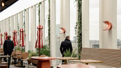 Ondertitel: Impressionnant sky bar en acier au 22ème étage