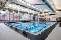 Une piscine dont la prestance est rehaussée par une toiture métallique en shed
