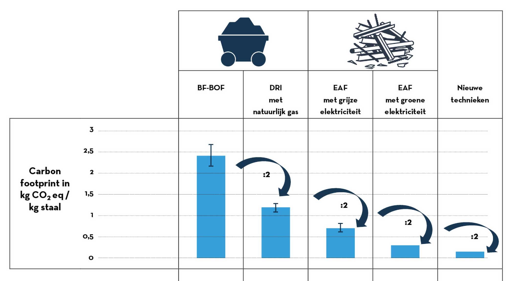 Comme pour presque tous les autres matériaux de base dans notre société (ciment, verre, plastique, etc.), la fabrication de l'acier représente elle aussi une place importante dans l'empreinte carbone mondiale. Cependant, la production mondiale annuelle de près de 2 milliards de tonnes d'acier est tout simplement indispensable : il y a quelque part une pièce ou un morceau d'acier irremplaçable dans tout ce que nous faisons et utilisons. Même le passage aux énergies renouvelables fait appel à l'acier (dans les éoliennes, les canalisations, les moteurs, ...). Un peu plus que la moitié de la consommation mondiale d'acier est destinée à la construction.
