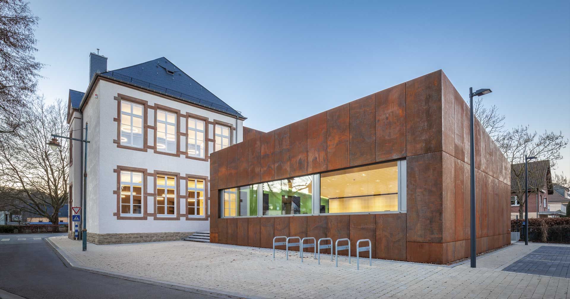 A Erpeldange-sur-Sûre, en plein cœur du Grand-Duché du Luxembourg, le bâtiment communal a été transformé en profondeur pour pouvoir accueillir dans les meilleures dispositions une école de chant et de musique, ainsi que la fanfare locale. Conçu par le bureau d’architecture OBLIK., basé à Mertert, le projet comprenait une extension avec une enveloppe en acier auto-patinable (‘corten’), et une révision complète des abords pour une accessibilité optimale.