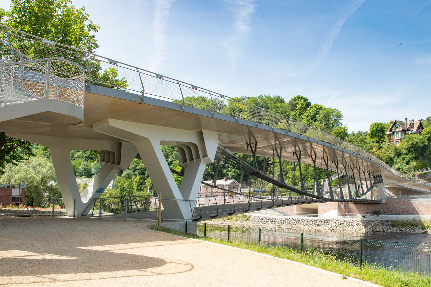 Nieuwe brug met hangende passerelle over de Ourthe