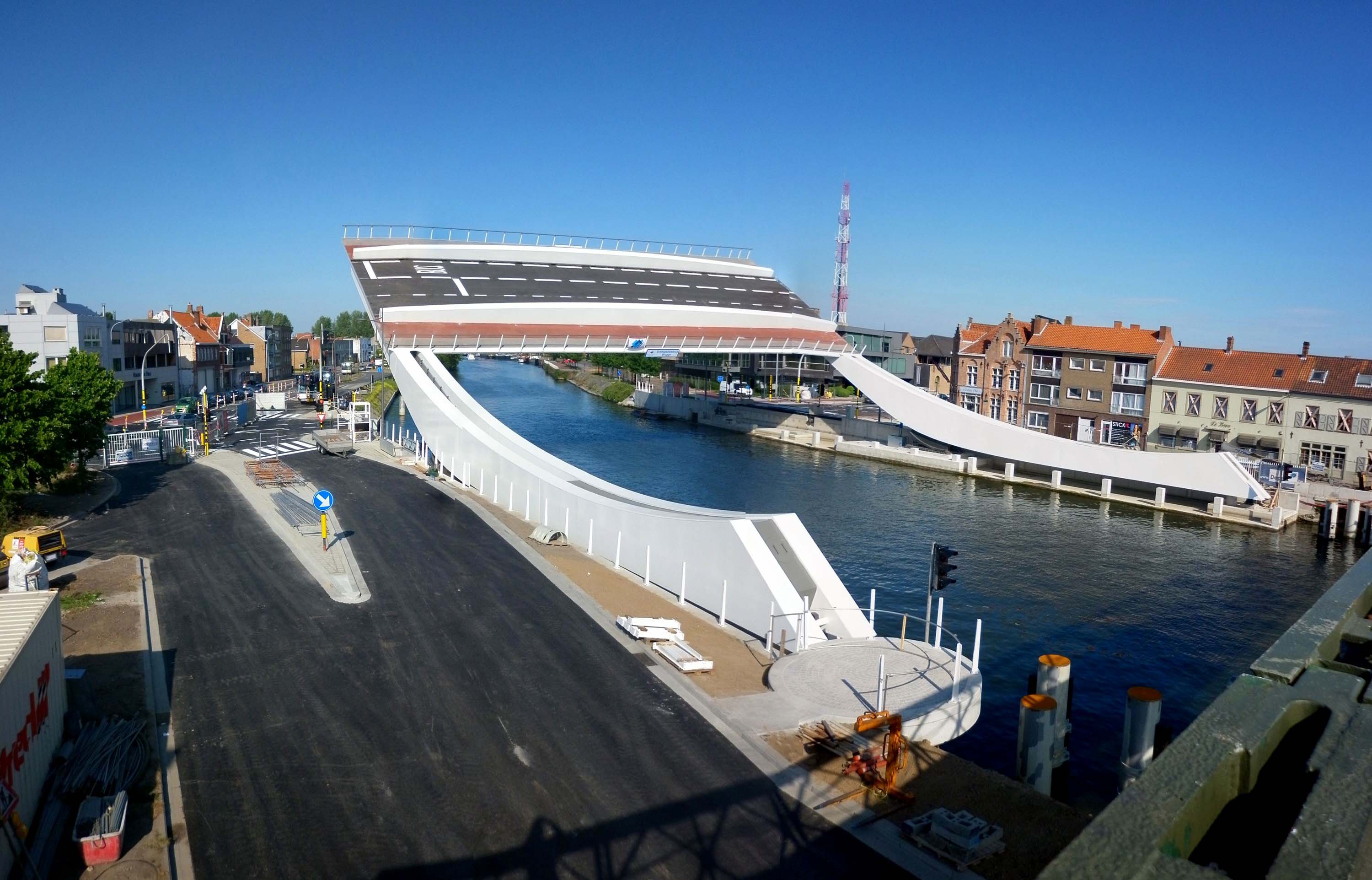 In de plaats kwam een 19 meter brede kantelbrug met 15 meter hoge rolarmen. Deze rolbasculebrug is in die zin uniek, omdat de hefbeweging langs de lengteas en dwars op de as van het kanaal geschiedt. Dit gebeurt hier niet rond een vast draaipunt, maar met een bewegend draaipunt, bestaande uit een boogvormig gedeelte dat op de onderbouw rolt.
