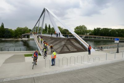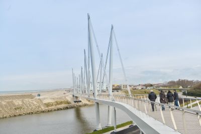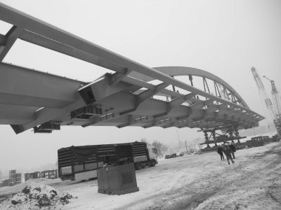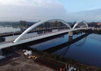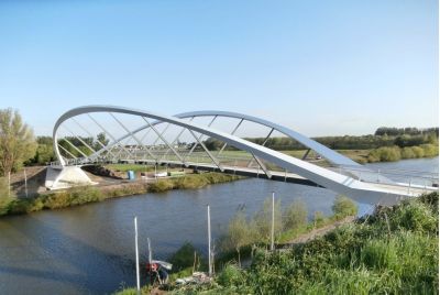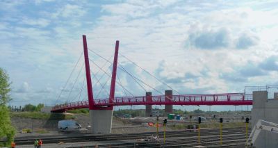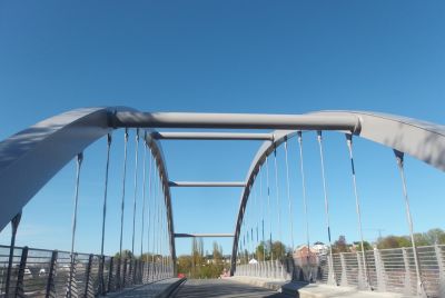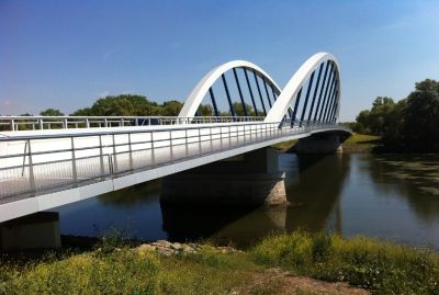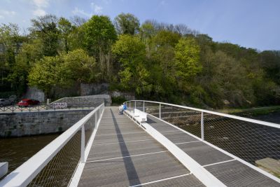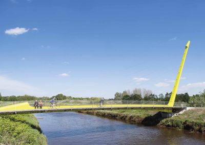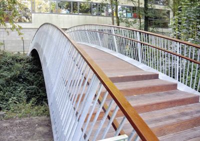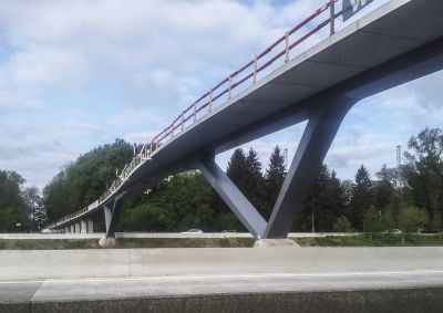 Aanvankelijk was een ontwerp gepland van een 300 ton zware stalen brug met lange aanbruggen en trapliften. Door de stijging van de staalprijzen werd een slanker ontwerp van amper 100 ton voorgesteld en uitgevoerd.<br>