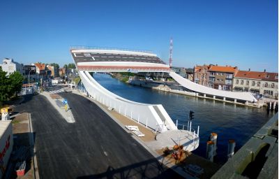 Tekst: <p>Aan het kanaal Gent-Terneuzen wordt Zelzate Brug bediend vanuit een 23 m hoge toren. Deze betonnen structuur uit 1964 was aan een complete renovatie toe. Gezien de grote tijdsdruk op de uitvoering, werd er gekozen om de bestaande structuur te behouden en opnieuw water- en winddicht af te werken. Rond deze bestaande structuur werd een nieuwe cocon ontworpen. Deze cocon is een markant volume geworden waar verschillende functionele elementen in verwerkt zijn: een passerelle voor onderhoud, een luifel als zonnewering en een volume-uitbreiding die de verschillende bijkomende functies op controleniveau huisvest. De nieuwe kop is bekleed met strekmetaal met open structuur. De toevoegingen moesten hierbij zo licht mogelijk zijn om de bestaande structuur zo weinig mogelijk te belasten. De structuur moest de gevraagde overspanningen kunnen overbruggen en tegelijkertijd een stijf geheel vormen en wegens de grote hoogte van het gebouw moest de montage eenvoudig en snel kunnen gebeuren. Net om deze redenen koos het ontwerpteam voor een staalstructuur.