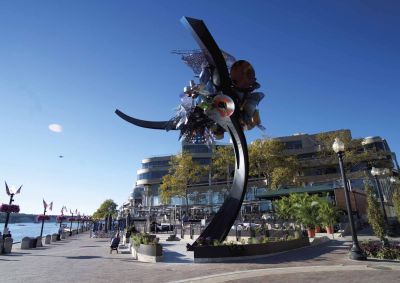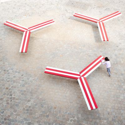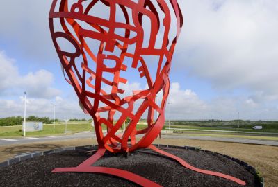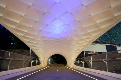 Tekst: One World is een openbare kunstinstallatie van de hand van Arne Quinze die hij ontwierp ter gelegenheid van 10 jaar Tomorrowland, het alom geprezen Belgische dancefestival. Het project bestaat uit twee delen: een sculptuur van geschilderd staal (26 m hoog) en een wandel- en fietsbrug met houten vloer (537 m). Het gebruik van staal heeft een lichte en verfijnde realisatie mogelijk gemaakt.