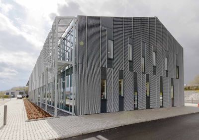 Tekst: <p>Design, functionaliteit en energiezuinigheid: dat waren de drie criteria die aan de grondslag lagen van de bouw van de nieuwe productiehal van ME Construct in Bree. Deze hal van 2.000 m2 bestaat uit twee delen: een deel voor staal- en constructiewerken, een tweede voor de montage van lamellen, containers, cassettes, akoestische panelen enz. Het dak loopt naadloos over in de kopse gevelbekleding die dan overgaat in een gedeelte aluminium strekmetaal van Métal Déployé.<br>