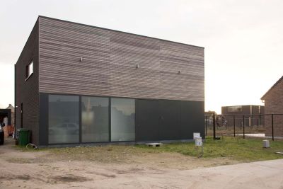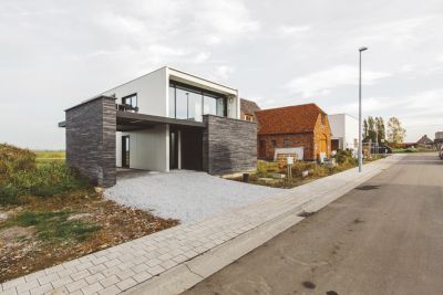 Tekst: <p>Bij de realisatie van een opvallende nieuwbouwwoning te Wondelgem speelde het budget een primordiale rol voor de uitvoeringsmethodiek. Om de kostprijs te drukken, werd gestreefd naar een korte bouwtijd en een eenvoudig materiaalgebruik. Uit deze overwegingen vloeide een hedendaags ontwerp voort dat opgebouwd werd uit een staalskelet en dat hoofdzakelijk uit geprefabriceerde elementen bestaat. Naast de stalen kolommen en balken, hanteerde men tevens betonnen predallen en werd het dak opgebouwd uit sandwichpanelen. De afwerking binnenin is vrij sober gebleven. PU vloeren versterken er de strakheid en grootte van de oppervlakten, de predallen zijn zichtbaar gelaten en zijn enkel voorzien van een dun spuitplamuur. </p>