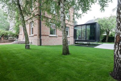 Tekst: <p>In samenspraak met de dienst Monumentenzorg werd een bestaande woning uit begin 19de eeuw volledig in originele staat hersteld en tegelijkertijd voorzien van een nieuwe stalen uitbreiding langs de achterzijde en zijkant. Bij dit ontwerp werd gezocht naar een totaal contrasterend volume ten opzichte van het historisch karakter van de beschermde woning. Staal was hierbij de geschikte partner om het totale dossier uit te werken en een hedendaagse verfijndheid te realiseren. Dit zowel qua verhoudingen van de volumes, als qua detaillering, als qua materialen. </p>