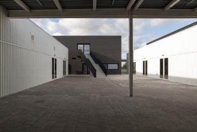 Tekst: <p>Dit industriële gebouw werd opgetrokken voor het sorteren en opslaan van groene koffiebonen. Het productiegedeelte is uitgevoerd in staal met rondom een luifel. <br>
