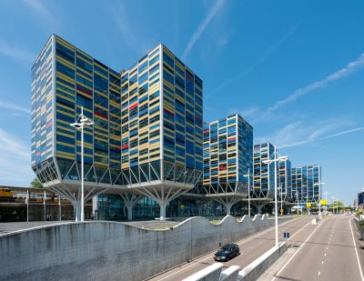 Tevens zorgt de staalstructuur ervoor dat men een uitkraging kan maken waarop 7 verdiepingen in beton rusten. In de structuur zitten ook twee vierendeelliggers, een van twee verdiepingen en een van drie hoog. Hierdoor kunnen fijne architecturale kolommen worden gerealiseerd terwijl er toch grote overspanningen mogelijk zijn.<br>